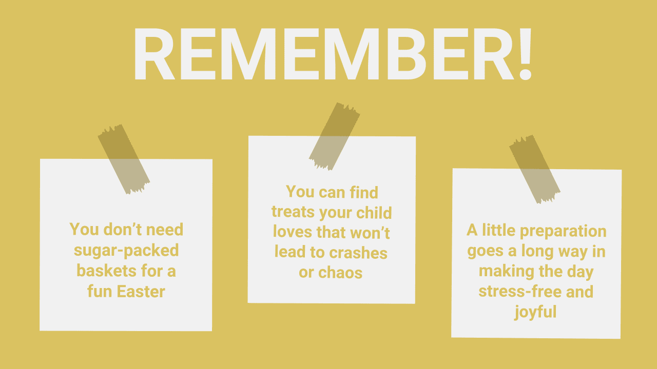 You don’t have to choose between celebrating Easter and protecting your child’s health and behavior. With just a few simple swaps—like dye-free candy, allergen-friendly treats, and creative non-candy fillers—you can create a holiday that’s just as magical, but way more ADHD-friendly.