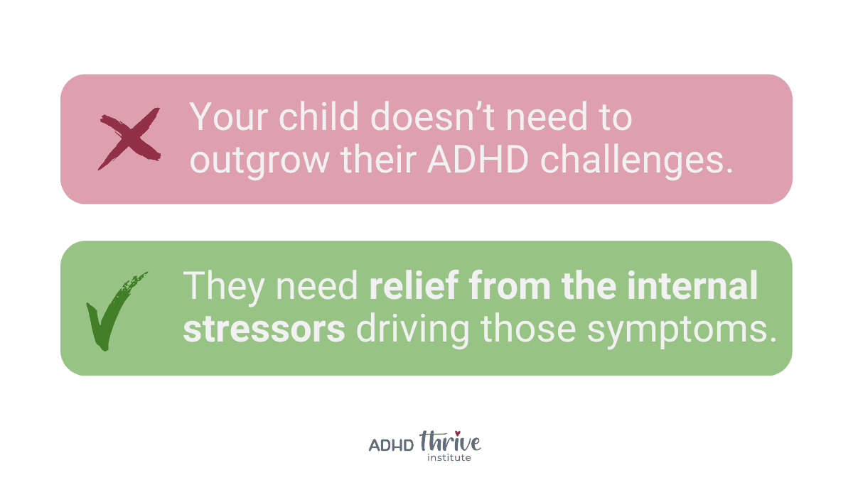 You begin to understand that your child doesn’t need to outgrow their ADHD challenges. They need relief from the internal stressors driving those symptoms.