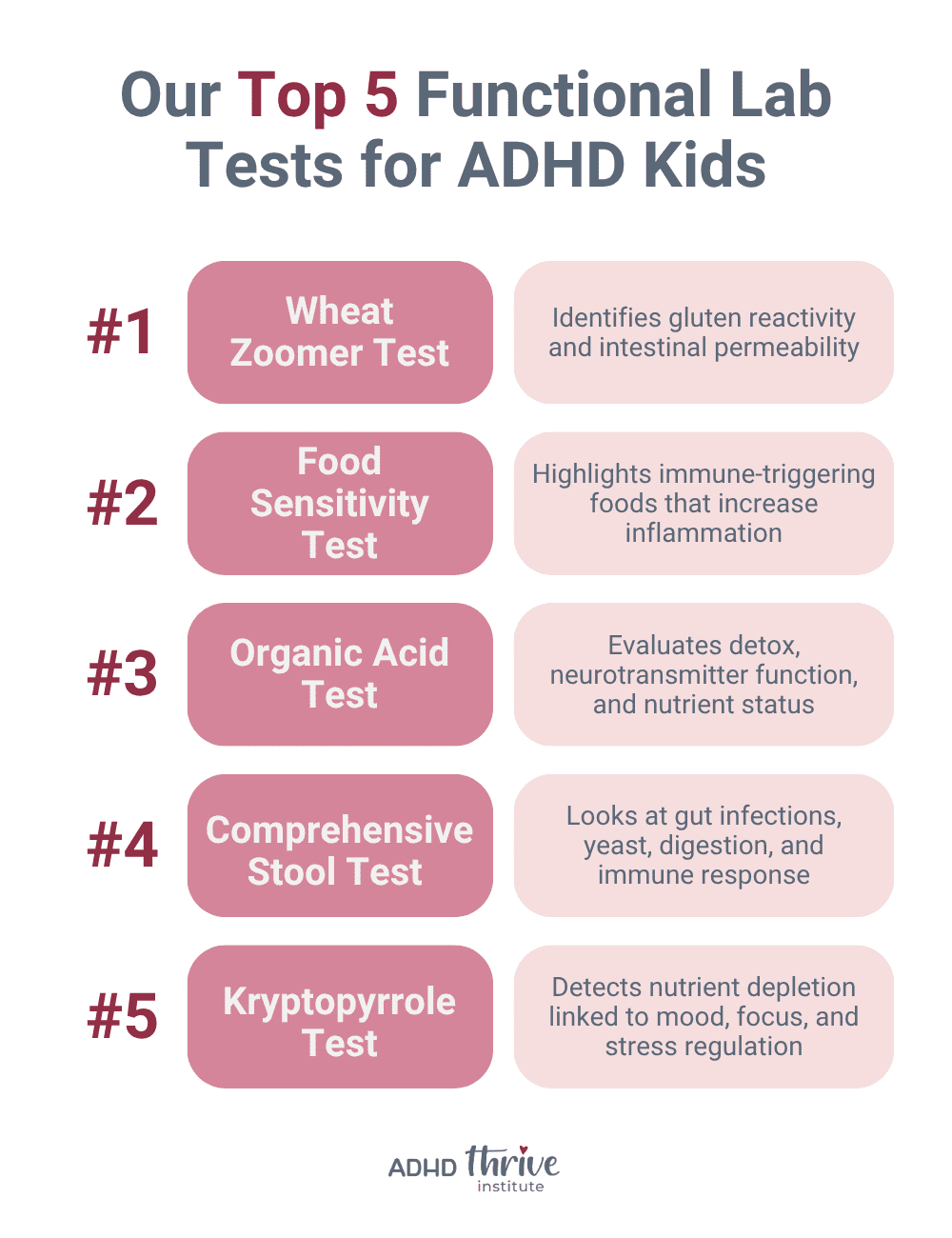 Together, these tests show us the “why” behind your child’s symptoms so we can finally stop guessing and start supporting what their body truly needs. Your child’s symptoms aren’t random.